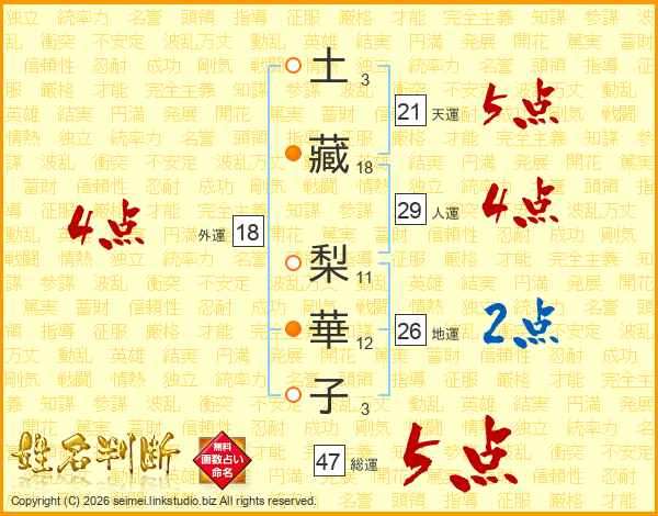 土藏梨華子さんの総運は47画の5点!