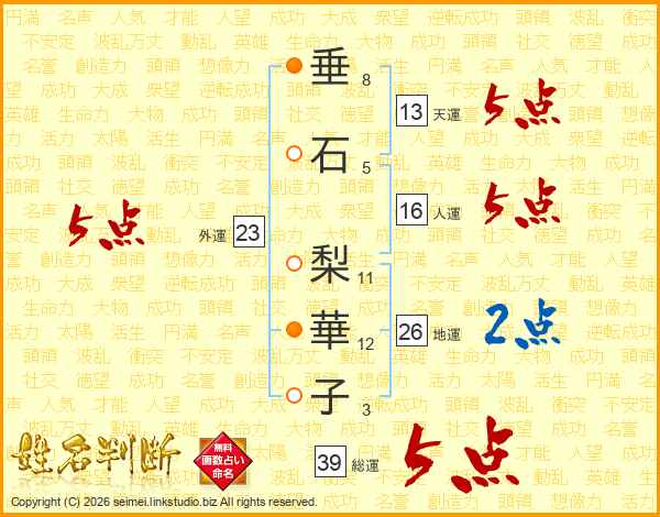 垂石梨華子さんの総運は39画の5点!
