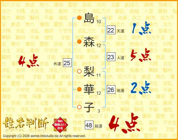 島森梨華子さんの総運は48画の4点!