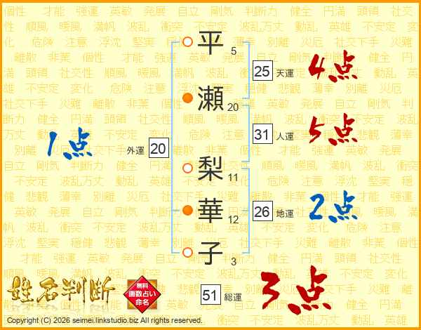 平瀬梨華子さんの天運は25画の4点!