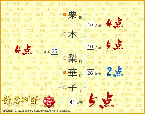 栗(10画)本(5画) 梨(11画)華(12画)子(3画)