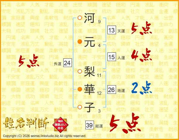 河元梨華子さんの総運は39画の5点!