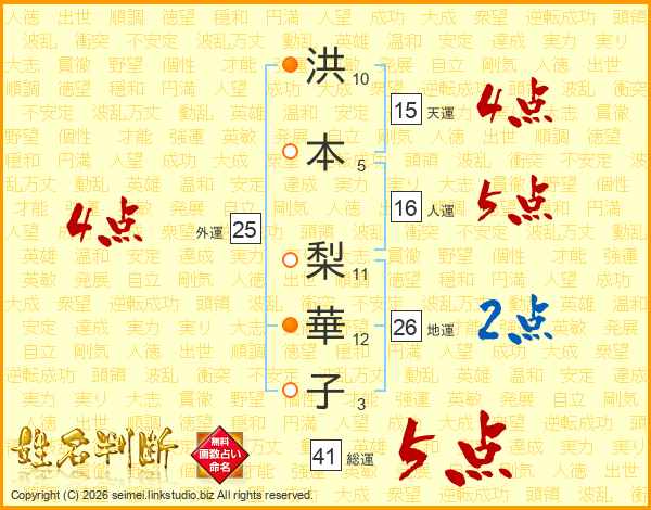 洪本梨華子さんの総運は41画の5点!