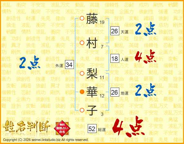 藤村梨華子さんの地運は26画の2点!