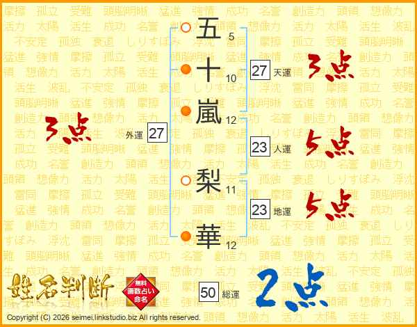 五十嵐梨華さんの総運は50画の2点!