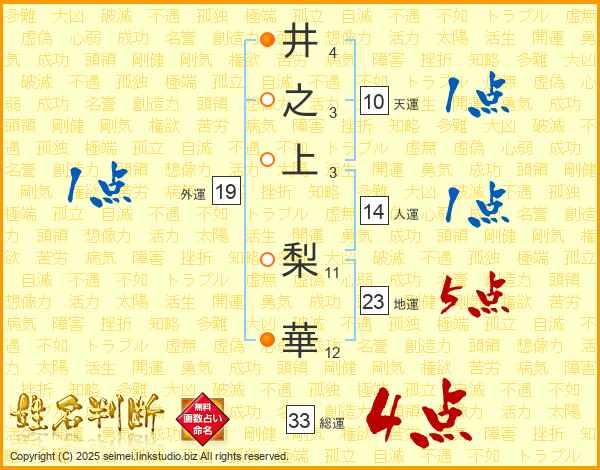 井(4画)之(3画)上(3画) 梨(11画)華(12画)
