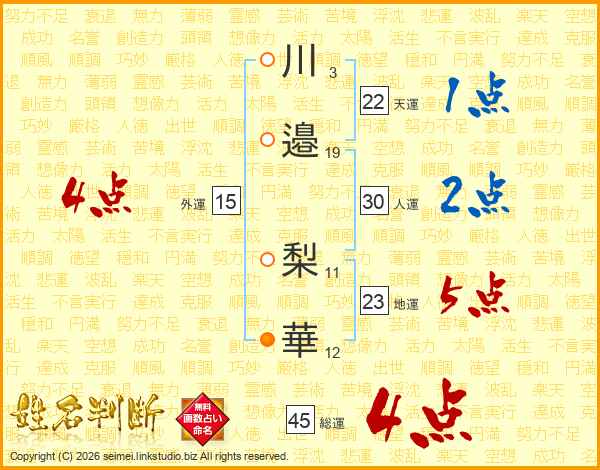 川邉梨華さんの総運は45画の4点!