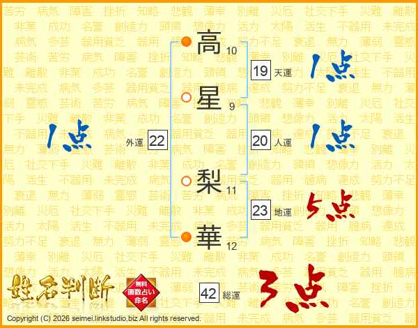 高(10画)星(9画) 梨(11画)華(12画)