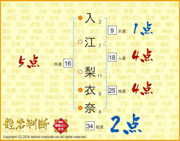 入江梨衣奈さんの外運は16画の5点!
