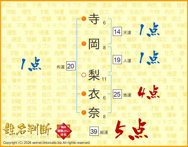 寺岡梨衣奈さんの総運は39画の5点!