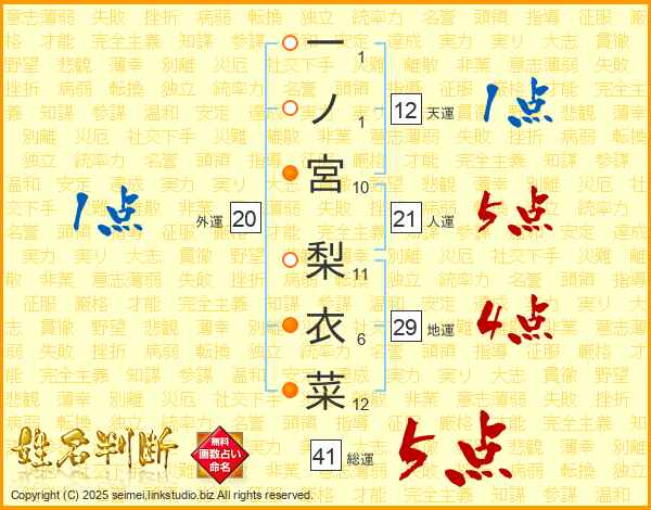 一ノ宮梨衣菜さんの総運は41画の5点!