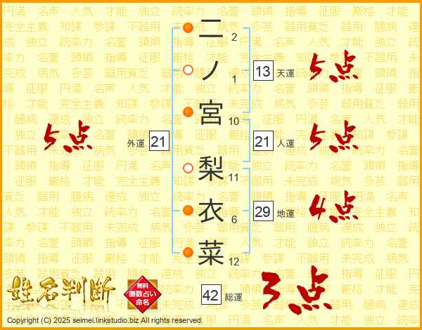 二ノ宮梨衣菜さんの外運は21画の5点!