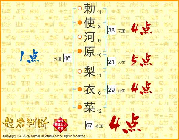 勅使河原梨衣菜さんの天運は38画の4点!