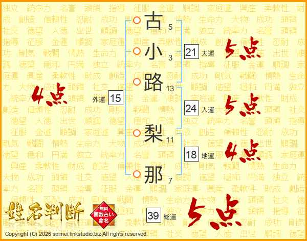 古小路梨那さんの総運は39画の5点!