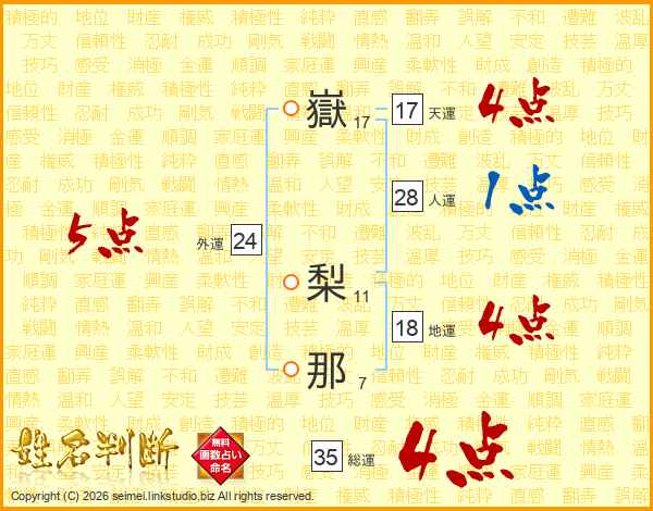 嶽梨那さんの総運は35画の4点!