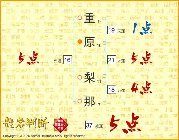 重原梨那さんの総運は37画の5点!