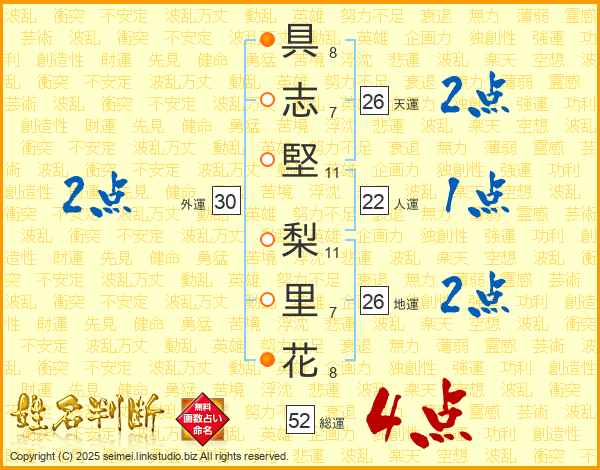 具志堅梨里花さんの総運は52画の4点!