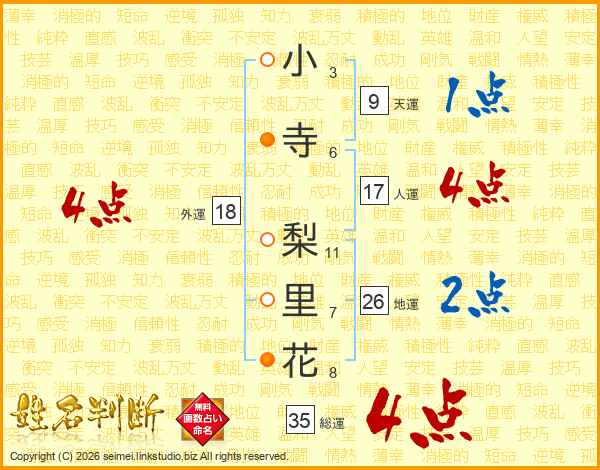 小(3画)寺(6画) 梨(11画)里(7画)花(8画)