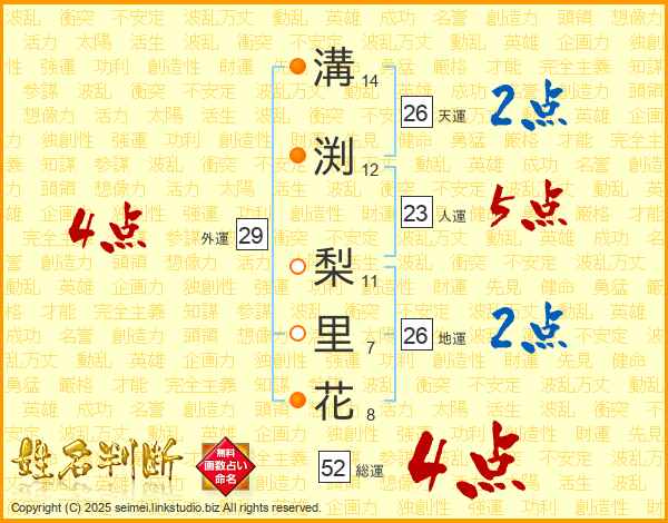 溝渕梨里花さんの総運は52画の4点!