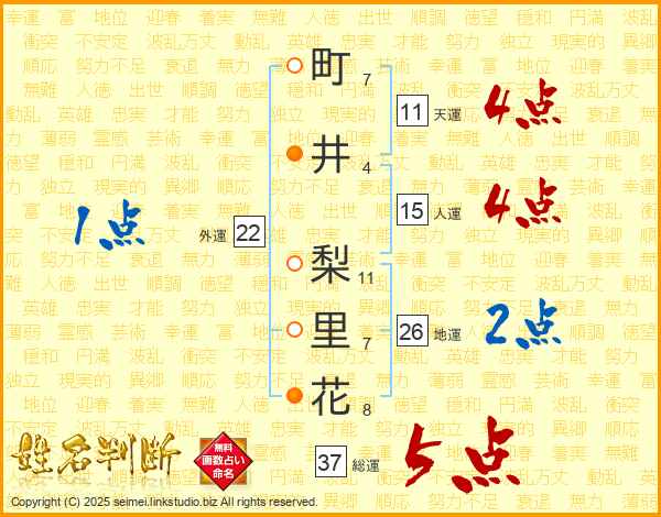 町(7画)井(4画) 梨(11画)里(7画)花(8画)