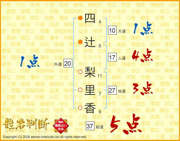 四(4画)辻(6画) 梨(11画)里(7画)香(9画)