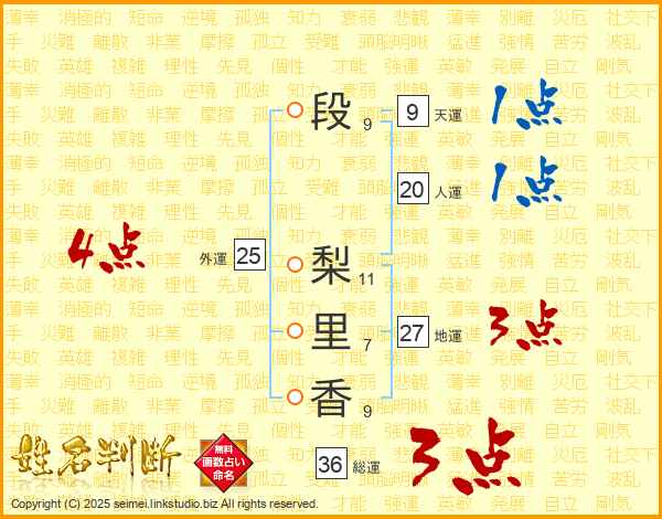 段梨里香さんの外運は25画の4点!