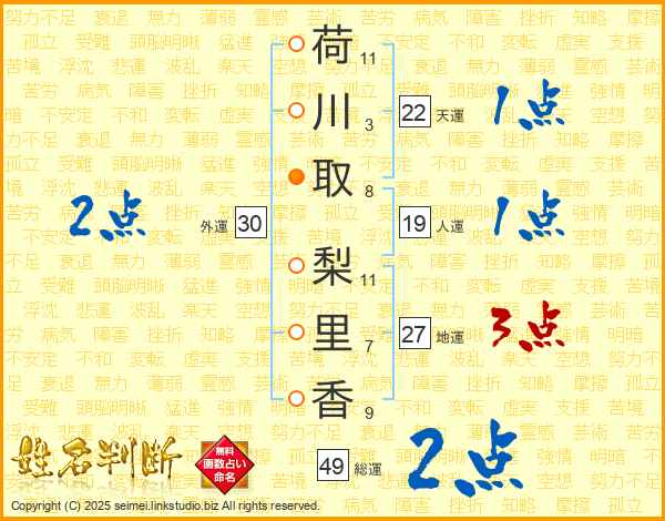 荷川取梨里香さんの総運は49画の2点!