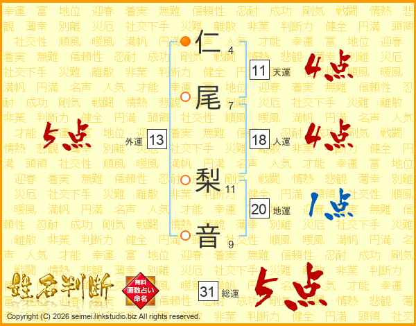 仁尾梨音さんの総運は31画の5点!