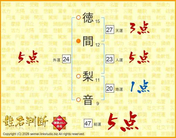 徳間梨音さんの総運は47画の5点!