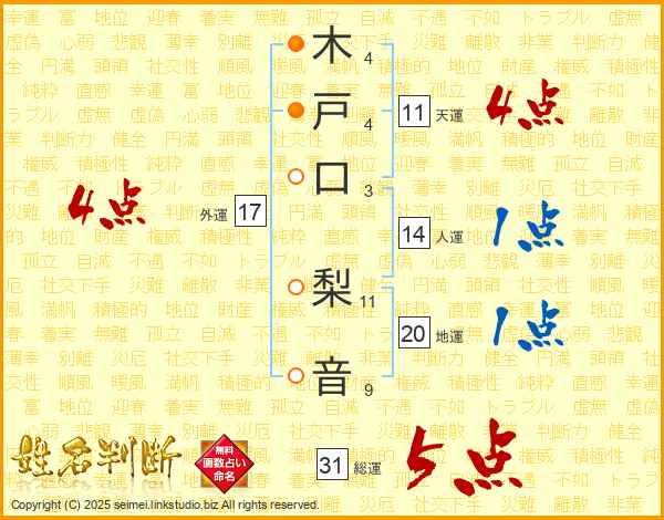 木(4画)戸(4画)口(3画) 梨(11画)音(9画)