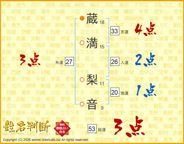 蔵満梨音さんの天運は33画の4点!