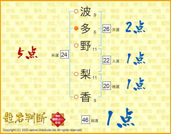波多野梨香さんの天運は26画の2点!