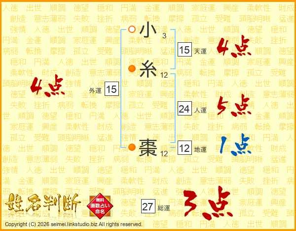 小糸棗さんの総運は27画の3点!