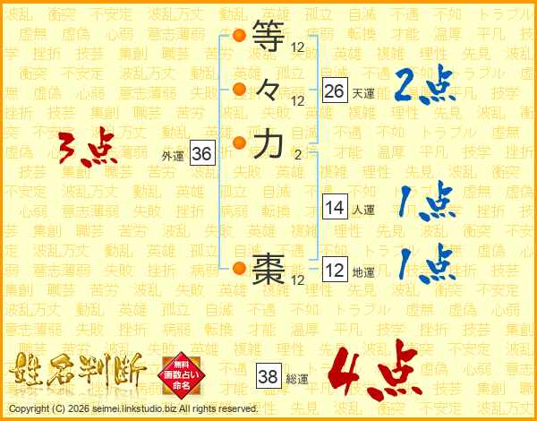 等々力棗さんの総運は38画の4点!