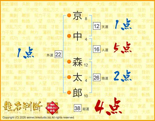 京中森太郎さんの総運は38画の4点!