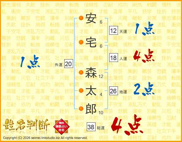 安宅森太郎さんの総運は38画の4点!