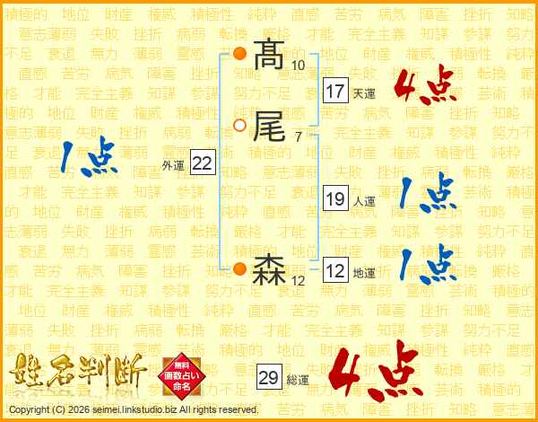 髙(10画)尾(7画) 森(12画)