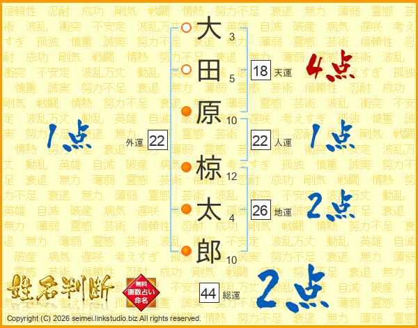 大田原椋太郎さんの地運は26画の2点!