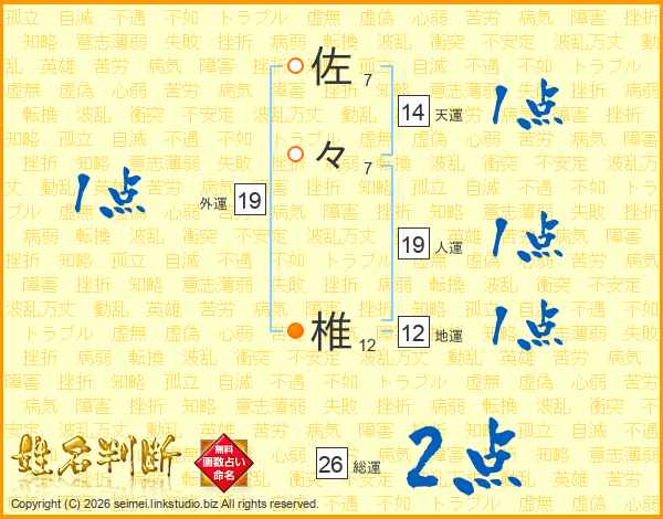 佐々椎さんの総運は26画の2点!