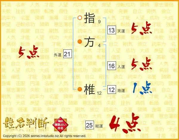 指方椎さんの総運は25画の4点!