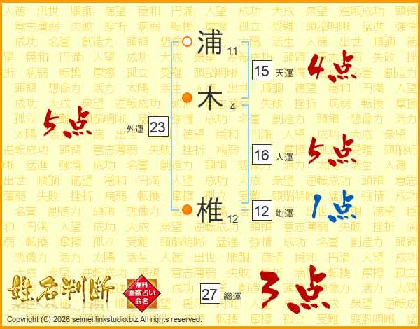 浦木椎さんの総運は27画の3点!