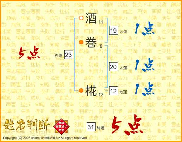 酒(11画)巻(8画) 椛(12画)