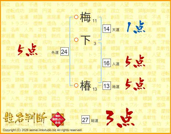 梅下椿さんの総運は27画の3点!