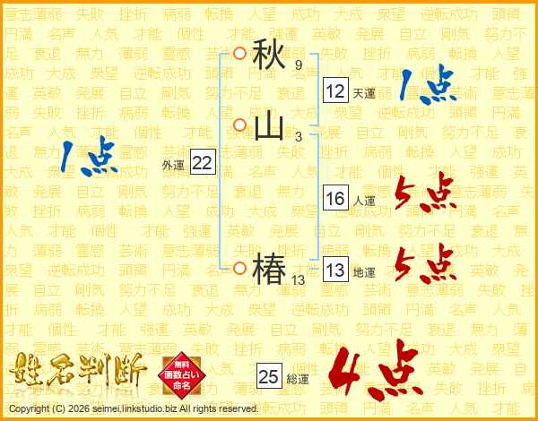 秋山椿さんの総運は25画の4点!