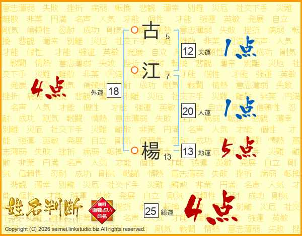 古江楊さんの総運は25画の4点!