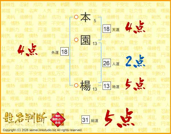 本園楊さんの人運は26画の2点!