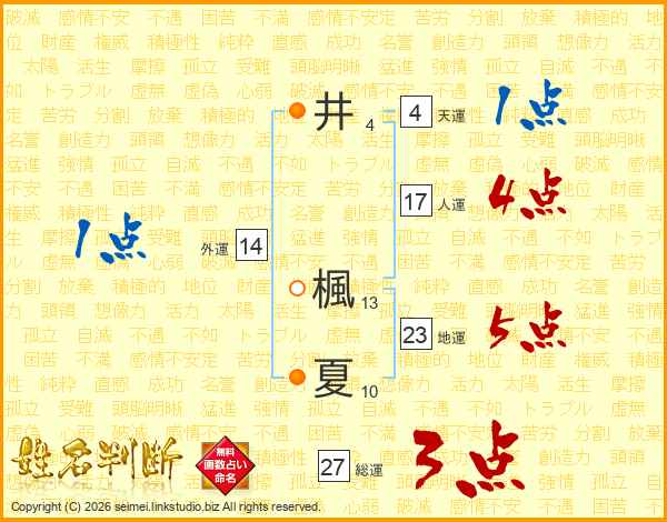 井(4画) 楓(13画)夏(10画)