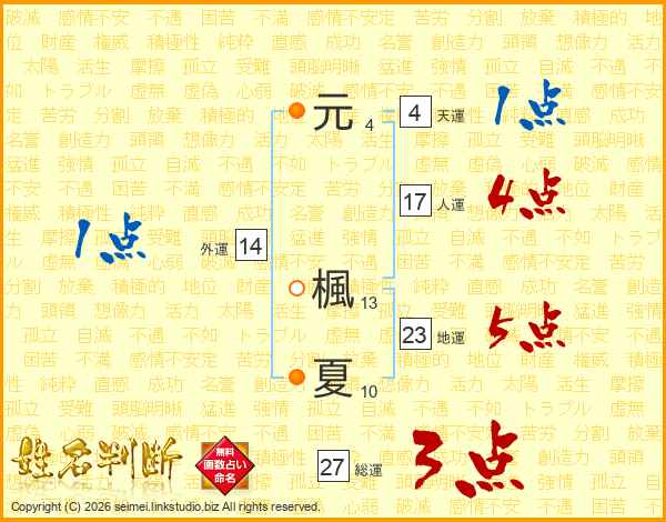 元(4画) 楓(13画)夏(10画)