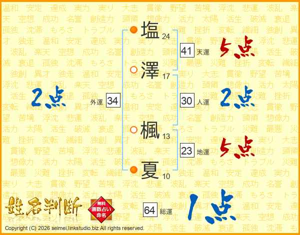 塩(24画)澤(17画) 楓(13画)夏(10画)