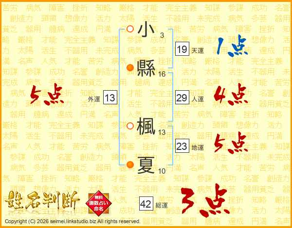 小縣楓夏さんの総運は42画の3点!